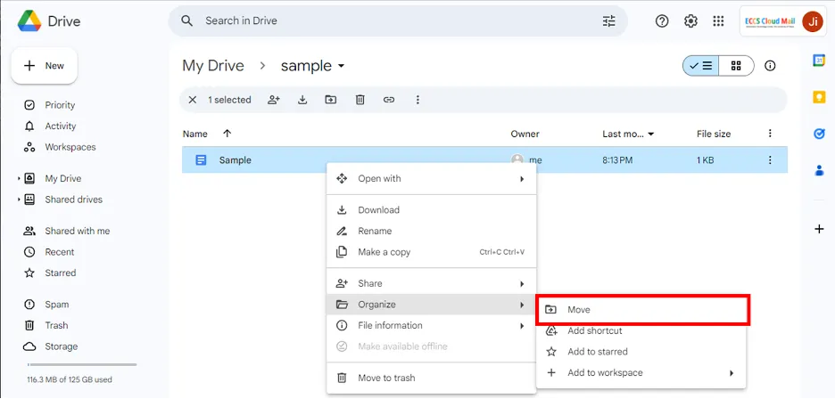 To proceed with the following steps, make sure you are already logged into ECCS Cloud Mail and have Google Drive open in your browser. If you have not completed these two steps, please refer to “Open Google Drive in the browser” on the Google Drive page (an English translation is planned).