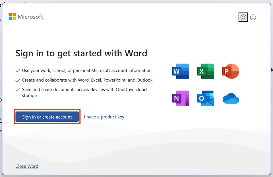• If the following dialog is displayed You are not signed in with any Microsoft account in the Office app. Please click “Sign in or create an account.”