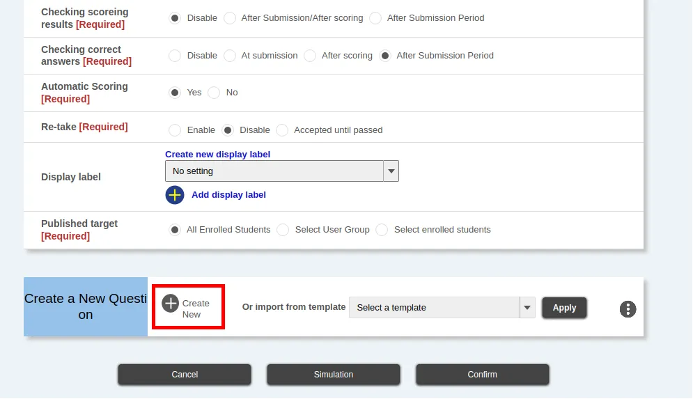 - Checking scoring results*: It allows enrolled students the option to refer to the scoring results themselves or not.