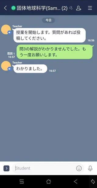 学生の理解度を把握することを心がけていました。対面では、学生の顔を見て、板書をしながら授業を進めていましたので、学生の雰囲気から、内容を理解しているかどうかを判断することができていました。しかし、オンラインでは通信容量の問題もあり、学生側はビデオをオフにしていたため、顔を見ることができず、理解度も把握しにくくなってしまいました。そこで、学生に「内容がわかっていない」ということを知らせてもらうために、LINE のオープンチャットを通じて、授業時間中に質問を送ってもらいました。