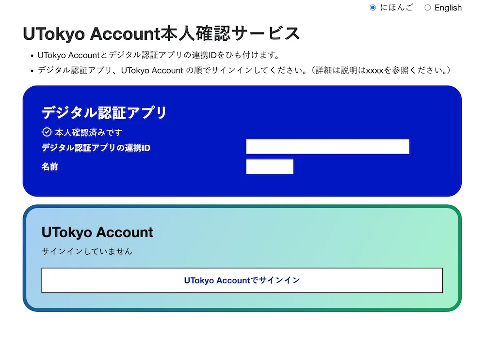 連携状況は,UTokyo Account本人確認サービスまたはUTokyo Account利用者情報確認サイト上で確認することができます.