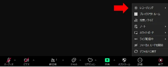 ミーティング進行中にレコーディングを開始・一時停止・停止する